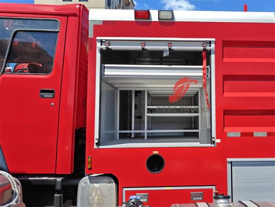 6×4, RHD/LHD can be optionalThe fire rescue special truck, built on the sturdy Howo 6x4 heavy-duty chassis, integrates excellent power of 371HP, can challenge all kinds of difficult roads, and lays a good foundation for emergency fire rescue. The Howo fire truck is equipped with a 6000-liter large-capacity water tank and a PS professional fire pump, with a long spray distance of up to 65m. Operation introduction, optional control panel language, and a variety of optional configurations are provided to meet different needs. This Howo fire water truck provides solid protection for fire safety and demonstrates excellent performance and flexibility. The double-row cab of The Howo fire fighting truck provides enough space and quality to load firefighting equipment and maintain good driving performance. The cab can accommodate 5 firefighters and is equipped with air conditioning to ensure that the driver can stay comfortable in any weather conditions.