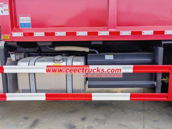 The Howo garbage trash compactor truck adopts an advanced 12 front and 2 rear gearbox, combined with a 6*4 drive form to ensure stability and efficiency in complex road conditions. The 25CBM curved tank body is made of Q235 special steel, with a tank body thickness of 4mm and an overall molding process. The compactor ratio is as high as 1:3.4, ensuring the ultimate garbage compactor efficiency. The fully automatic hydraulic control system has a single loading and unloading cycle time as short as 40-45 seconds, and is equipped with PLC intelligent control, which is easy and fast to operate. In manual mode, the operator can use the operating lever and electric control buttons to complete operations such as compactor and unloading of the garbage compartment.