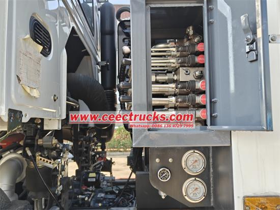 The Howo garbage trash compactor truck adopts an advanced 12 front and 2 rear gearbox, combined with a 6*4 drive form to ensure stability and efficiency in complex road conditions. The 20CBM curved tank body is made of Q235 special steel, with a tank body thickness of 4mm and an overall molding process. The compactor ratio is as high as 1:3.4, ensuring the ultimate garbage compactor efficiency. The fully automatic hydraulic control system has a single loading and unloading cycle time as short as 40-45 seconds, and is equipped with PLC intelligent control, which is easy and fast to operate. In manual mode, the operator can use the operating lever and electric control buttons to complete operations such as compactor and unloading of the garbage compartment.