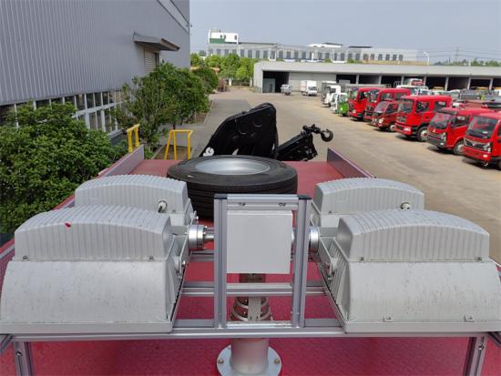 Integrated with 30kW generator set and lifting lighting, mast height ≥ 7 meters, support 360° pan-tilt rotation and wireless remote control, coverage radius over 100 meters.