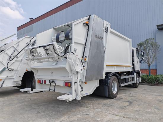 Rear tilting device for 360L and 1100L metal binsThe Howo NX garbage rear loader truck is a high efficiency equipment specifically designed for urban waste management. It employs advanced compactor technology to significantly reduce the volume of garbage, thereby enhancing transportation efficiency, decreasing the number of transport trips, and lowering operational costs. Built on the Howo NX heavy chassis, the garbage rear loader is equipped with a 370HP Howo engine and HW 10-speed transmission, offering robust power performance and stable driving capabilities. With its compact design and easy operation, the Howo NX 16CBM garbage compactor is suitable for garbage collection and transportation in various environments, including cities and townships.