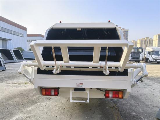 The 6CBM rear loader truck is built on the Howo light duty chassis, equipped with an YN4102QBZL diesel engine with a maximum power of 116 HP and a peak torque of 290Nm, matched with a 6-speed manual transmission WLY. It is powerful and stable, and can challenge all kinds of difficult roads. The garbage compactor bin is made of high-tensile steel, and key parts such as the floor (4mm) and side panels (3mm) are reinforced by laser/plasma cutting and automated welding processes to ensure the durability of the body.