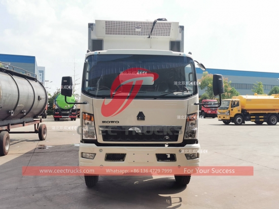 HOWO 8 ton freezer van (also called Refrigerated van HOWO, HOWO freezer truck, HOWO chiller van truck, HOWO 4×2 chiller lorry, HOWO refrigerated box truck) is a van or truck designed to carry perishable freight as specific temperatures.