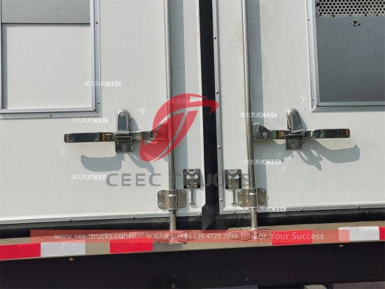 ▶ Refrigerated truck body structure is sandwich structure: Fiberglass + PU + fiberglass. All the double surface sandwich polyurethane panel and door are 100mm thickness, the Fiberglass plate thickness is 2.5mm for the outer and inner skins; the polyurethane foam density is 45-50kg/m3. (All is the best material in China and have excellent insulation performance).