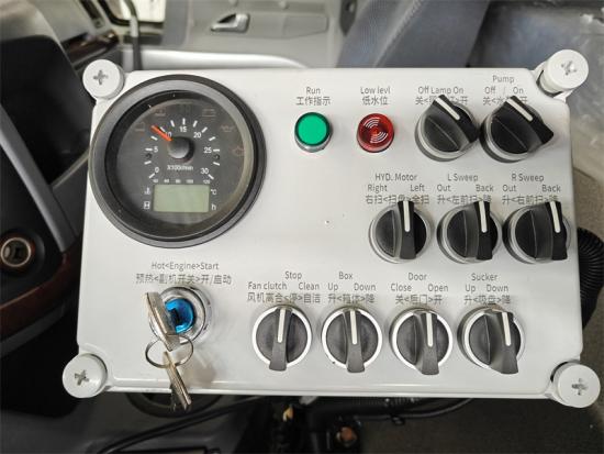 Total 4 pcs mechanical brushes and 1 sucking discmounted in the rear, it is driven by the hyraulic motoispeed is adjustable, can be independently controlled,has automatic avoidance function |