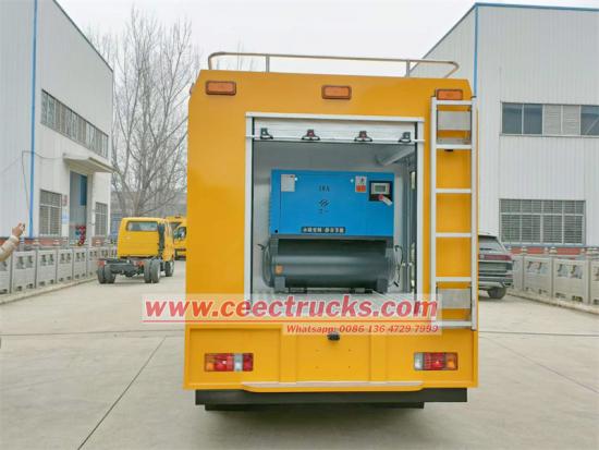 3. High-power power supply system: Isuzu mobile rescue fire truck is equipped with imported Japanese HONDA SHT11500 model generator with control cabinet, which can provide 11.5kw power 220V and 380V, which can meet the needs of a large number of electrical equipment working at the same time.