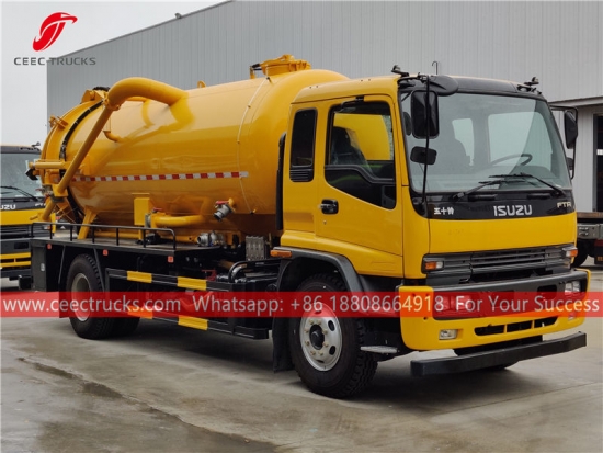 Combined sewer cleaner Truck ISUZU (also called Combined jet and vac truck, ISUZU combination jet truck, ISUZU FTR combined sewer cleaning truck, ISUZU 6 wheeler combined jetting vacuum truck, ISUZU combination sewer cleaner, ISUZU vacuum sewage jetting truck , ISUZU sewage suction jetting truck ) is a vehicle that is designed to clear any blockage with jetting nozzles moving in sewage pipeline under high pressure, and clear sewer drain lines by means of a powerful vacuum suction to suck all water plus mud from sewer hole. This truck is widely used for environmental protection.