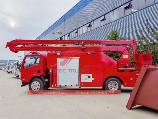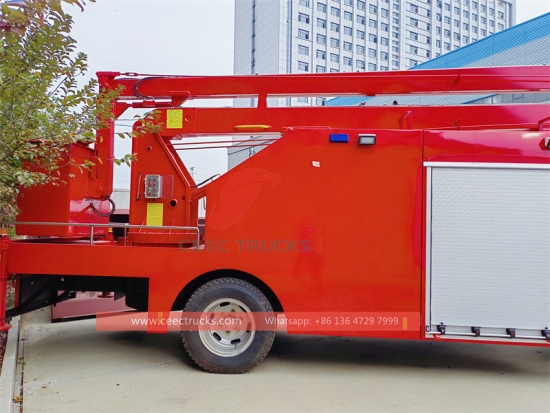 ISUZU High Ladder Fire Rescue Truck (also called ISUZU Fire fighting vehicle, ISUZU NPR water fire rescue truck, ISUZU 4×2 Fire rescue truck, ISUZU fire rescue truck, ISUZU fire engine manufacturer) is apply for fire brigade of large and medium city, petrochemical enterprises, airports and harbors and so on, to put our large area fire of oil and other substance.