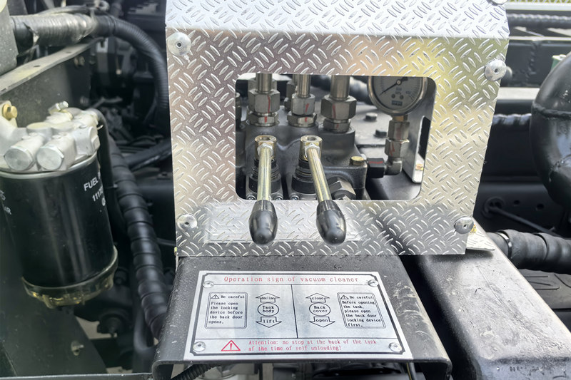 The vehicle is equipped with a high-pressure water pump and a high-power vacuum suction system. It can first use a high-pressure water gun to flush the stubborn dirt on the inner wall of the pipe, and then use a powerful vacuum pump to suck sewage and sludge into a sealed tank to achieve efficient cleaning.
