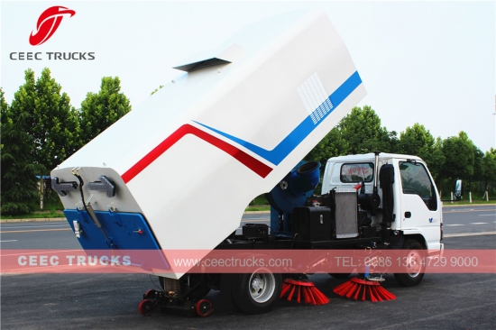 Road Sweeper 5cbm ISUZU (also called road sweeper truck, hydraulic street sweeper, vacuum road sweeping truck, trash collection truck, road cleaning vehicle) is designed for daily sweeping in community, city, highway, construction site, overhead roads, bridges, squares, airports as well as docks with asphalt concrete and cement concrete road surface.