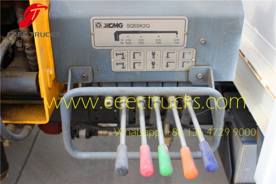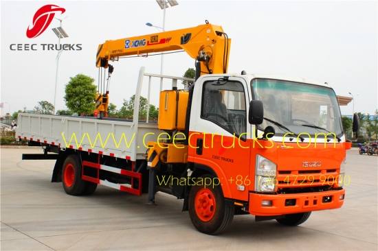 ISUZU 5 T truck mounted crane use original isuzu 4*2 chassis, 4HK1-TCG40 engine with 190HP, MLD 6-shift manual gearbox, XCMG 5T telescopic boom truck crane for good performance. widely export myanmar, phillippine, etc.