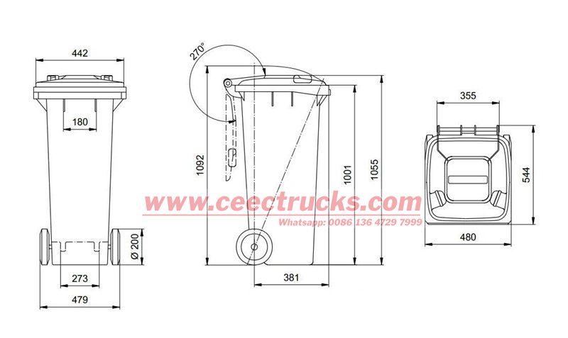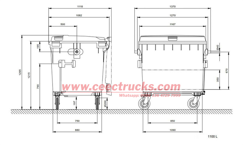 | Front | About 230L, on the front of garbage van | |