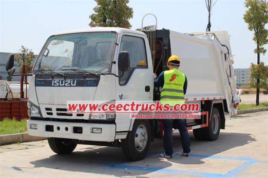 Isuzu garbage compactor truck equipped with a compartment with a capacity of 6 cubic meters, it can effectively handle large amounts of garbage. Its efficient compression device can compress the garbage, save space and improve transportation efficiency. The vehicle is equipped with a powerful power system to ensure stable power output. The easy-to-operate control system allows the driver to easily control and improve work efficiency. It is suitable for garbage disposal sites such as urban streets, communities and commercial areas, making important contributions to environmental cleaning and garbage classification.