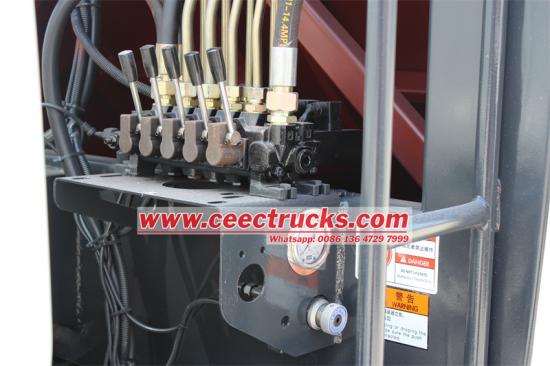Rear tilting device for 240L and 1100L binsIsuzu 6 wheeler municipal rear loader garbage truck also can be called ISUZU NKR 6cbm refuse compactor garbage truck, which is a powerful professional garbage disposal vehicle. The Isuzu 6cbm rear loader compactor truck produced by CEEC TRUCKS is equipped with Isuzu 4x2 ELF 600P chassis,Isuzu 120HP 4KH1 diesel engine, Euro 6 2999ml displacement, 3360mm wheelbase, 2+1 seats with AC inside cabin, air brake system with ABS, Inline 4-cylinder 4-stroke diesel engine, direction assistance. The truck has 3 operation modes, including CAN-BUS electric control in the cab, hydraulic joystick, CAN-BUS electric control box in the tailgate.
