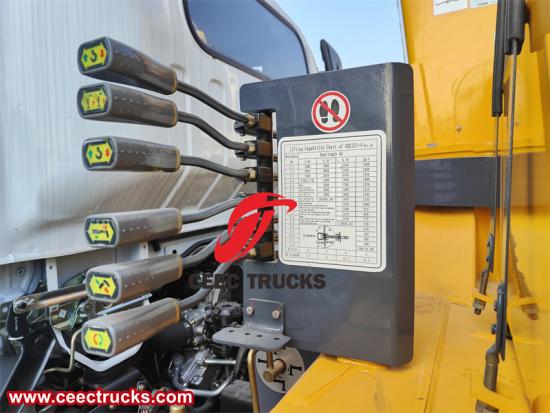 The heart of this truck is the XCMG SQS125-4 boom crane. This crane features a sturdy boom structure and advanced hydraulic system that provide unmatched reach, accuracy and load handling capabilities. It excels at lifting heavy objects with ease, making it an indispensable tool for construction sites, logistics operations and industrial applications where precision and strength are critical.