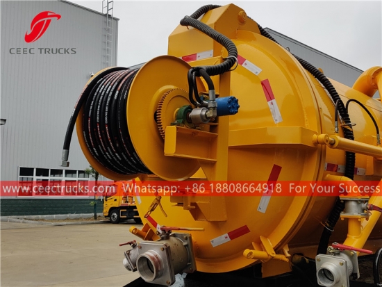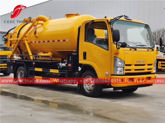 ISUZU combined vacuum truck (also called ISUZU combined jet truck, ISUZU combination jetting truck, ISUZU 4×2 combined sewer cleaner truck, ISUZU combined jetting and suction truck, ISUZU combined sewer cleaning truck, ISUZU combination jet/vac truck , ISUZU sewage suction and jetting truck ) is a vehicle that is designed to clear any blockage with jetting nozzles moving in sewage pipeline under high pressure, and clear sewer drain lines by means of a powerful vacuum suction to suck all water plus mud from sewer hole. This truck is widely used for environmental protection.