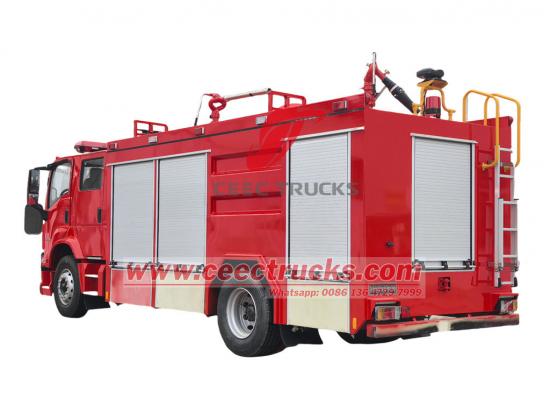 ISUZU dry powder fire truck is mainly equipped with dry powder fire extinguishing agent tank and dry powder spray device. Use dry powder to extinguish flammable liquid fires, gas fires, electrical fires, as well as general material fires. For large-scale chemical plant pipeline fires, the fire fighting effect is particularly significant. It is a standing fire truck for petrochemical companies. Based on ISUZU GIGA 4X truck chassis, with 4HK1-TCG60 diesel engine, and mounted CB10/40 fire pump and PL32 fire monitor, also mounted with dry powder chemical system and top mounted jetting canon.