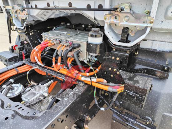 The battery pack of the Isuzu EVM600 electric chassis vehicle uses the latest integrated lithium iron phosphate battery pack developed by CATL, with a capacity of 106.95kwh, located on both sides of the frame. Compared with traditional battery packs, the single-pack battery used in the new car can reduce the number of high-voltage wire harnesses and brackets inside the box, helping to reduce the overall weight of the vehicle. Secondly, the cruising range of this model under the WLTC constant speed method can reach 480km, taking into account the cruising range requirements of truck drivers in daily operations.
