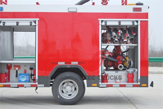 The overall body is a striking red color, which not only conforms to the traditional image of fire trucks, but also can quickly attract the attention of the surrounding people in an emergency, and buy precious time for rescue operations. There are 2 cubic water tanks and 1 cubic foam tank on both sides of the body. These large-capacity liquid storage tanks provide sufficient fire extinguishing media for the fire truck, ensuring a continuous supply of water during long-term and high-intensity firefighting operations.