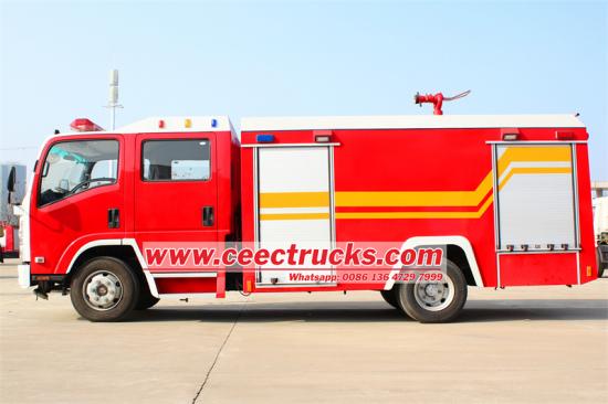 2000L dry poweder+6 pcs nitrogen gas bottleThis is a dry powder nitrogen fire truck built on the ISUZU NPR Chassis. It is equipped with a powerful ISUZU 4HK1-TCG60 engine with a displacement of 5.19L and an output power of 190 horsepower. It adopts a 4X2 drive mode and is equipped with an MLD 6 speed gearbox. The maximum speed can reach 95km/h. It is compact and flexible, and easy to operate to adapt to various complex road conditions.