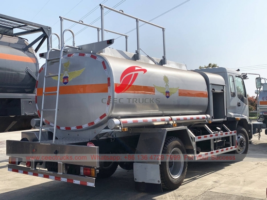 ISUZU 10,000 liters aircraft fuel bowser, ISUZU 4×2 chassis, 6-speed manual gearbox, ISUZU 205HP diesel engine, standard fuel tanker, famous brand oil pump as standard. All painting and logos depend on requirement.