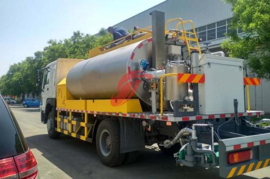 In addition to providing power for the asphalt spreading system, the 26 Kw auxiliary engine also provides other support for the entire vehicle. For example, when additional power is needed for climbing or accelerating, the auxiliary engine can respond quickly and provide additional power support to the main engine, allowing the truck to cope with various complex road conditions more easily. This not only improves construction efficiency, but also ensures driving safety.