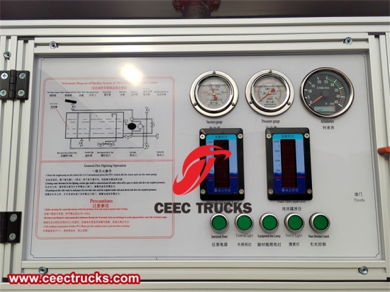 Critical instruments such as vacuum gauges, pressure gauges and tachometers are embedded in the panel, providing instant data feedback, allowing firefighters to monitor the operating status of the engine and pumps to ensure that the fire truck is in the best condition for fighting. The accurate readings and reliability of these dials are crucial to guide firefighters to adjust their strategies for fire scene operations.