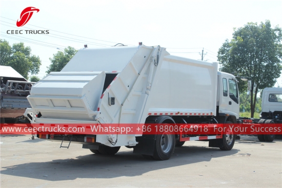 ISUZU FVR Compressed refuse truck (also called refuse compactor, ISUZU FVR rear loader, brand new ISUZU trash compactor truck, compressed garbage truck, ISUZU garbage compressor truck, waste compactor manufacturer in China) is designed for daily rubbish transport in such living areas as all kinds of cities, large station, port and wharf, airport, and densely-populated areas like industrial and mineral enterprises and military units.