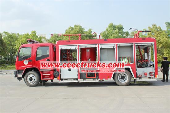 2000L dry powderISUZU FVR fire trucks with dry powder tanks have important uses in firefighting. First of all, dry powder fire monitors for dry powder tank firefighting are suitable for various places that require efficient fire extinguishing and fire control, such as industrial plants, warehouses, oil fields, airports, etc. Its spray coverage is wide and can effectively control large-area fires. The dry powder fire monitor sprays the dry powder fire extinguishing agent onto the fire source through high-pressure gas or compressed air.