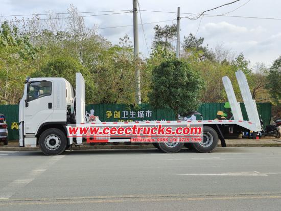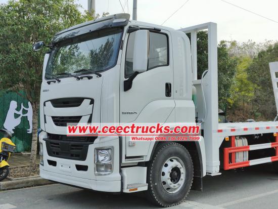 New or used Isuzu Selfloading Flatbed transporter, also called Isuzu flatbed truck,Isuzu giga excavator transport truck, is specially designed and produced for transporting engineering mechanism(such as excavator, loader), farming mechanism(such as harvestor , rice transplanter, cultivator), and other special equipment or big mechanisms which are not suitable for long distances traveling.