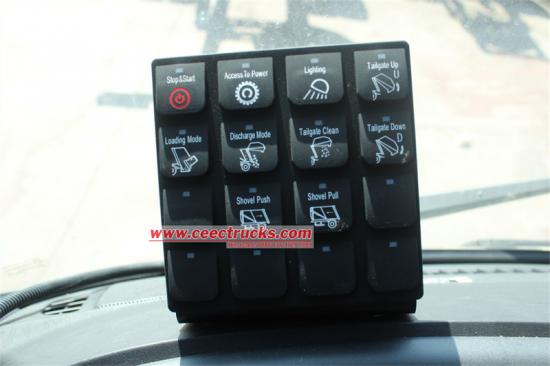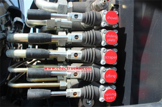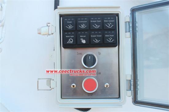 With manual and automatic two ways of control methods, the operator can operate in the cabin, in the back of the truck, very convenient and efficient, also equipped with working device of emergency braking stop button. |