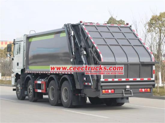 With CAN-BUS electric control systemThis Isuzu GIGA 8x4 heavy-duty compactor garbage truck is an outstanding work in the field of sanitation engineering and a strategic weapon for urban cleaning! Equipped with a 6WG1-TCG61 engine, it has a powerful output of 460 HP, a displacement of 15.681L, and turbocharging and intercooling technology. It is not only powerful, but also meets the stringent Euro 6 emission standards. Its 33tons total weight configuration and 20tons load capacity can fully meet the daily garbage removal needs of large and medium-sized cities.