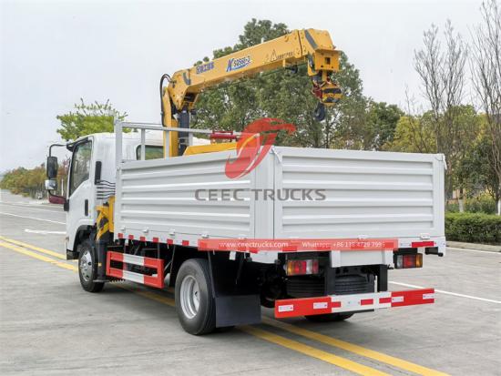 XCMG SQS125-4 boom craneThe Isuzu NPR 5tons truck-mounted crane was chosen because it shows excellent advantages in terms of manufacturing, performance and usage. Strictly follow high standards of quality control during its manufacturing process to ensure the durability and reliability of the vehicle; in terms of performance, the powerful engine, precise control system, and advanced suspension and braking systems make the Isuzu NPR 5tons truck-mounted crane outstanding in It can perform well in various working scenarios. At the same time, the multi-functional crane design and spacious cargo box make it suitable for various lifting and transportation tasks to meet the needs of different industries.