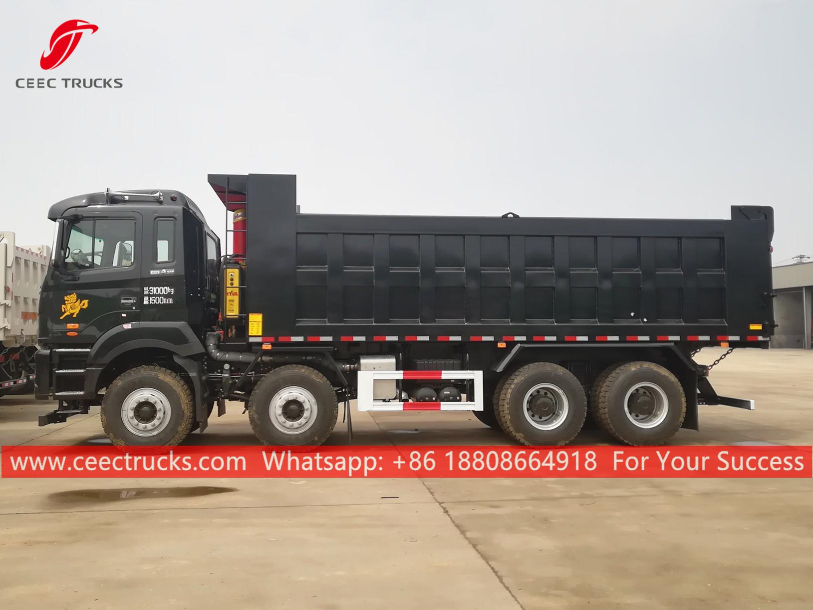 JAC 8x4 dump tipper truck, JAC 8x4 LHD chassis, FAST 10-shift manual gearbox, famous Chinese brand WEICHAI 310HP diesel engine, high strength steel tipper body, with HYVA or domestic hydraulic lifter optional. All painting and logos depend on requirement.