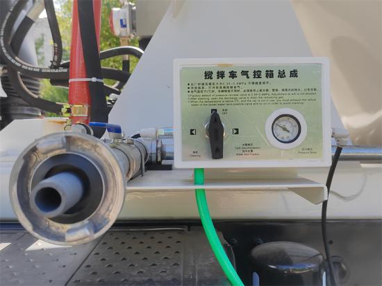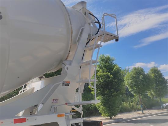 During transport, it maintains a low forward rotation speed to prevent the concrete from solidifying. During discharge, the tank tilts and reverses at high speed, using the spiral blades to push the concrete to the discharge port. A pneumatic water supply system is then used to clean the tank interior. The entire process is controlled by a coordinated hydraulic system and mechanical structure, ensuring continuous and uniform concrete mixing from mixing to discharge.