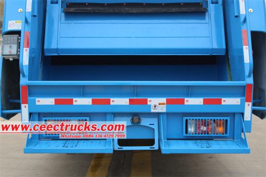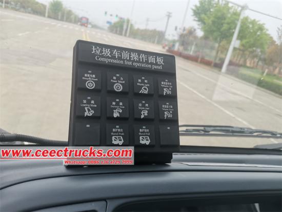 The truck boasts advanced control systems that facilitate easy and efficient operation. It features a Taiwan Yonghong PLC (Programmable Logic Controller) electrical control system, which allows for precise and reliable automation of the garbage compaction process. There are two sets of electrical control buttons strategically placed for operator convenience: one set inside the driver's cab and another set on the left side of the tailgate. Additionally, the truck is equipped with a hydraulic manual operation device located at the rear of the cab, providing an alternative method of controlling the garbage compaction functions in case of electrical system failure or for manual override. This dual control system ensures that the truck can be operated smoothly and efficiently, meeting the diverse needs of waste management operations.