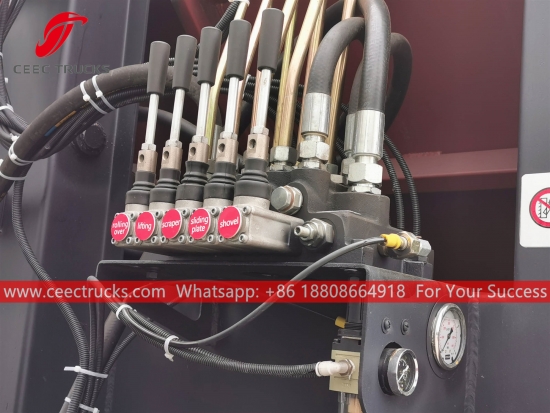 ** Back alarm and Camera can be equipped. ** Italy mulit-valve can be choose. ** 240L (single bin or double bin) or standard 660 L, 1100 L bins with bin lifter can be choose. |