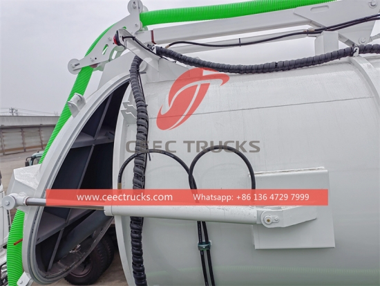 ---- Cylinder vacuum tank can be lifted hydraulically to 40-45 degree.Rear door can be opened and closed hydraulically.
