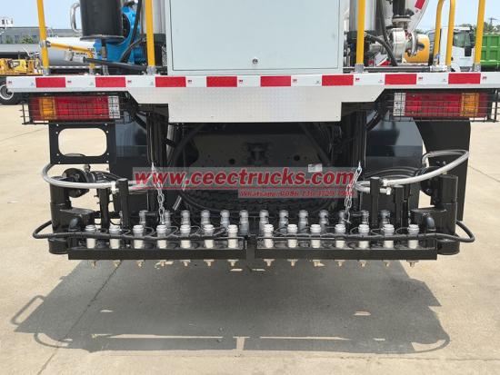The rear of the Shacman X3000 bitumen distributor tanker truck is equipped with a retractable spraying rod with adjustable width, which is equipped with multiple sets of high-precision flow control nozzles. It can accurately adjust the spraying volume and coverage according to construction requirements (such as permeable layer, adhesive layer, and sealing layer), and achieve wide-range variable spraying of 0.2-3L/㎡.
