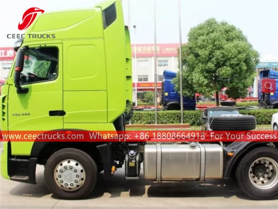 HOWO 440HP trailer truck tractor (also called Traction unit HOWO, HOWO Semi-trailer Tractor head, SINOTRUK HOWO 4X2 prime mover, big horse HOWO trailer truck, HOWO 6 wheeler tractor unit, new HOWO truck tractor) is a special engine that provides motive power for hauling a towed or trailered load.