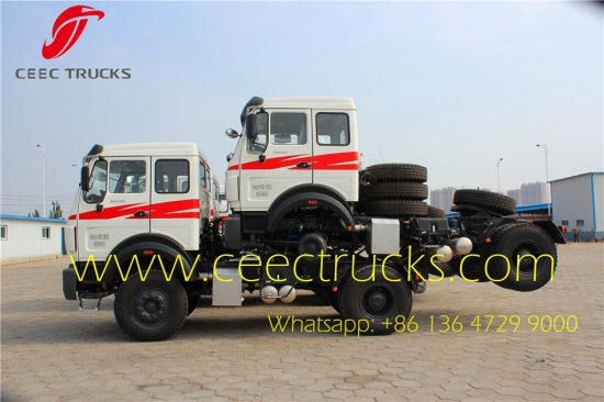 Beiben 1830 offroad camion tracteur, best NG80B prime mover for Africa customer, WEICHAI WP10.300N engine, FAST 9-shift manual gearbox for easy operation, JOST 90# single direction towing seat with towing capacity over 50T
